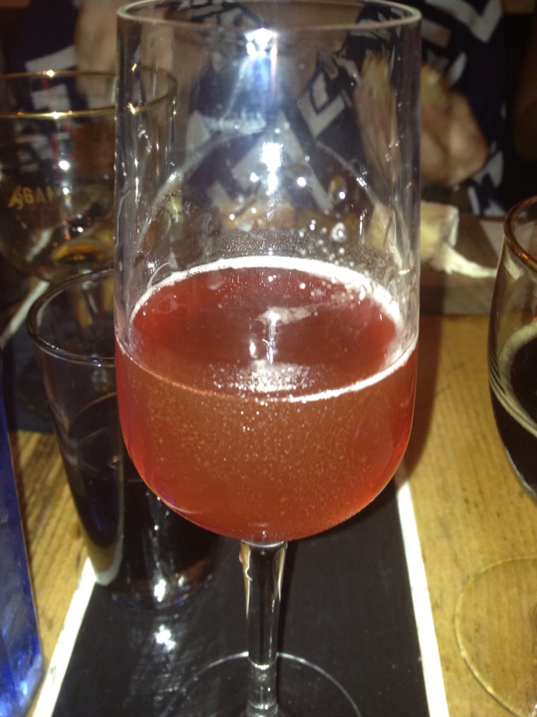 But the night wasn’t over yet! Easy Tiger and Ommegang surprised us with a final course: a plate of soft cheese, fennel relish, and another fresh baked bread (EDIT: Nancy’s Camembert from Hudson Valley, fennel marmalade and Pan au Levain roll – a sort of French “sourdough” – thanks Chef Andrew Curren for confirming) accompanied by a flute of Aphrodite lambic. The lambic was sweet and fruity with the color and flavor of raspberry (and just a little pear) all but masking a thread of Brett funk, and was an admirable way to end the night. It went fine with the cheese, but I kept thinking how well it would have paired with the pumpkin pie … though I would hate to have missed out on this latter offering of house bread.